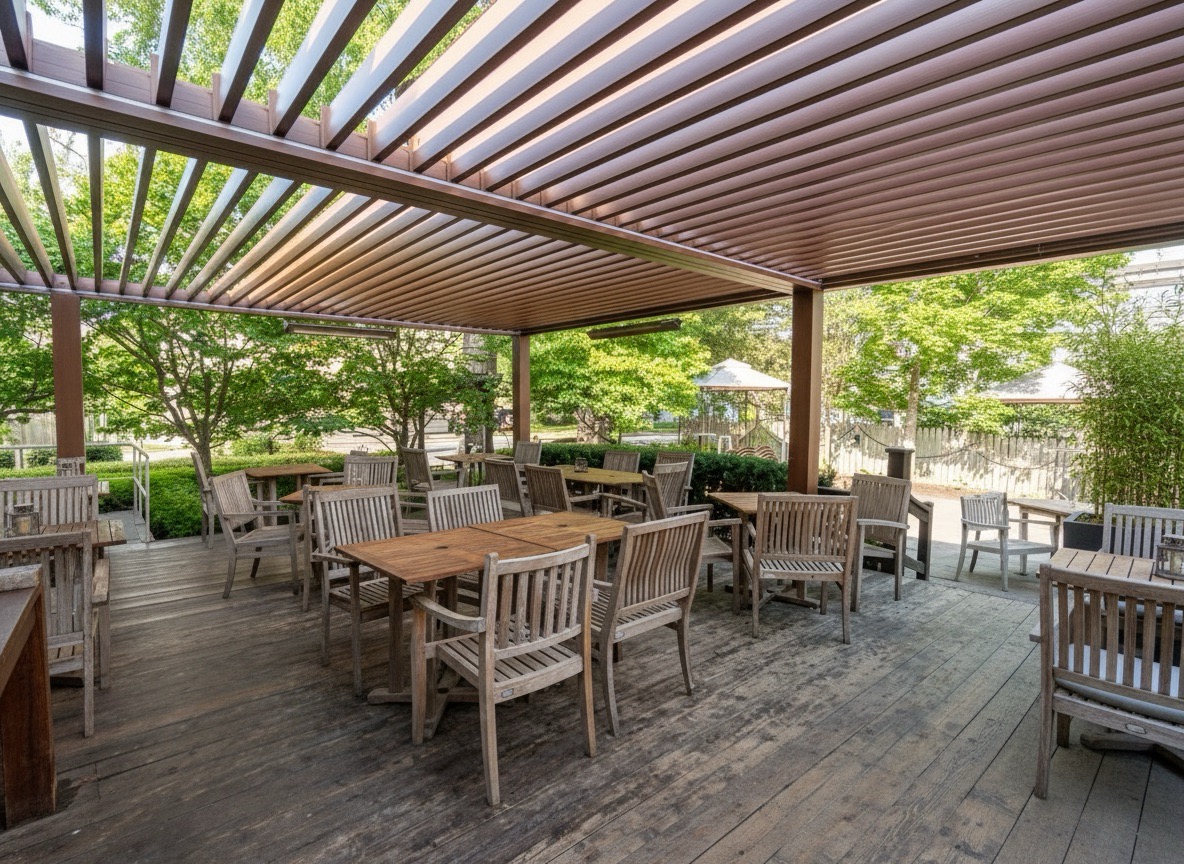 Inspirez-vous : pergolas bioclimatiques et aménagements extérieurs pour le secteur commercial. Des idées concrètes pour optimiser votre terrasse.